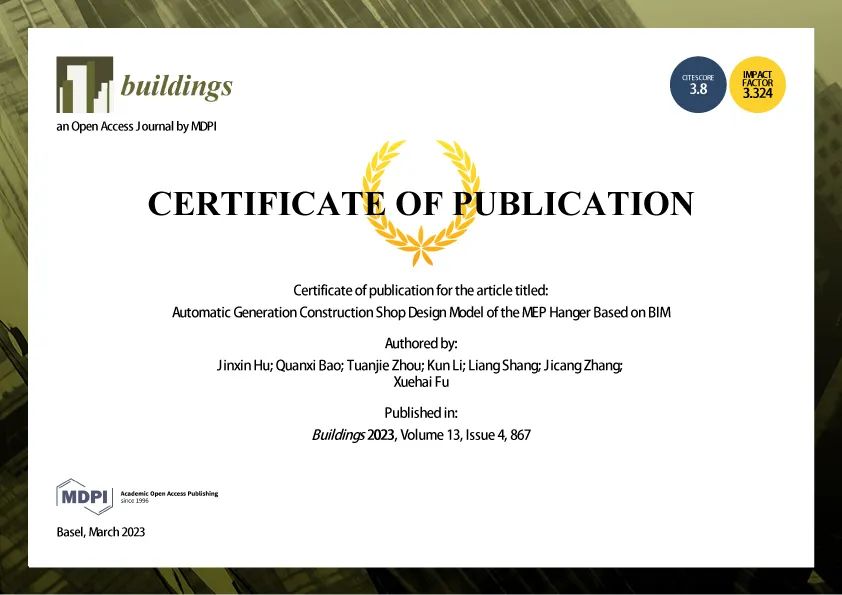 華固三維自動(dòng)化支吊架設(shè)計(jì)軟件研發(fā)成果登陸國際建筑期刊Buildings